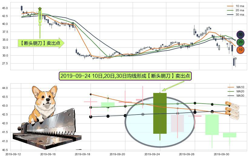 形态多维评估: ⚀ 2019-09-24日显现 10日-20日-30日均线 【断头铡刀】卖出点 看空信号,后市看跌,卖出
