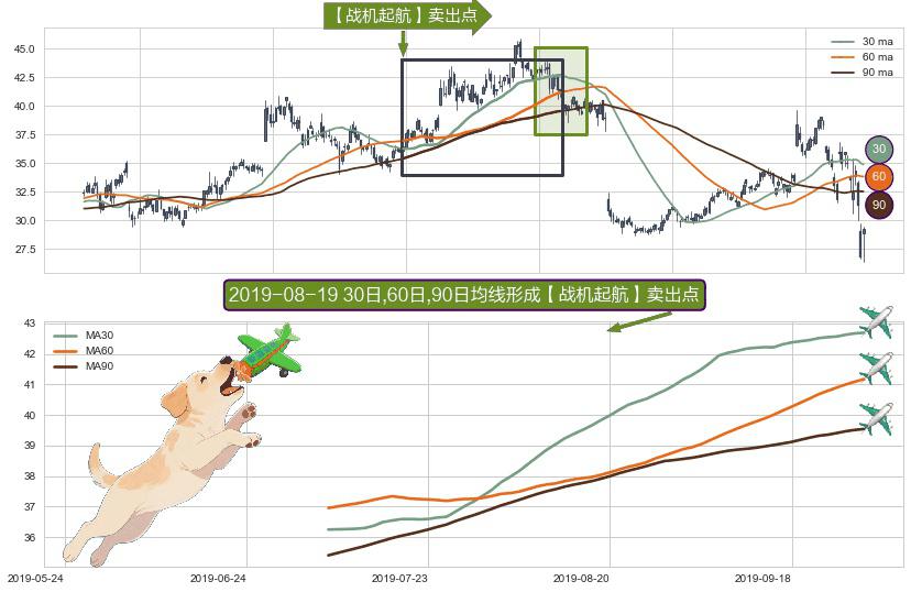 形态多维评估: ⚀ 2019-07-08日-2019-09-30日显现 30日-60日-90日均线 【战机起航】卖出点 看空信号,后市看跌,卖出