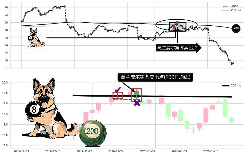 ⚀ 2019-12-27-日显现 葛兰威尔均线 200日均线 第⑧卖出点 下降趋势的中继信号,后市看跌,卖出信号