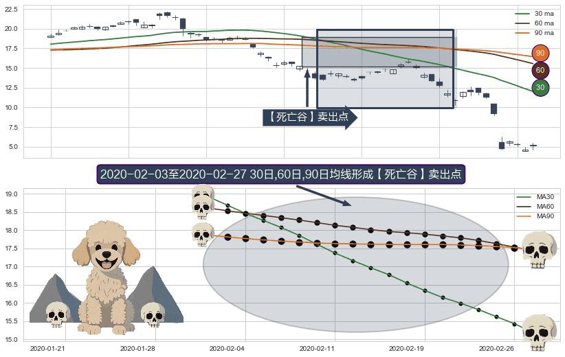⚀ 2020-02-04-日至2020-02-27-日显现 30日-60日-90日均线 【死亡谷】卖出点 看空信号,后市看跌,卖出
