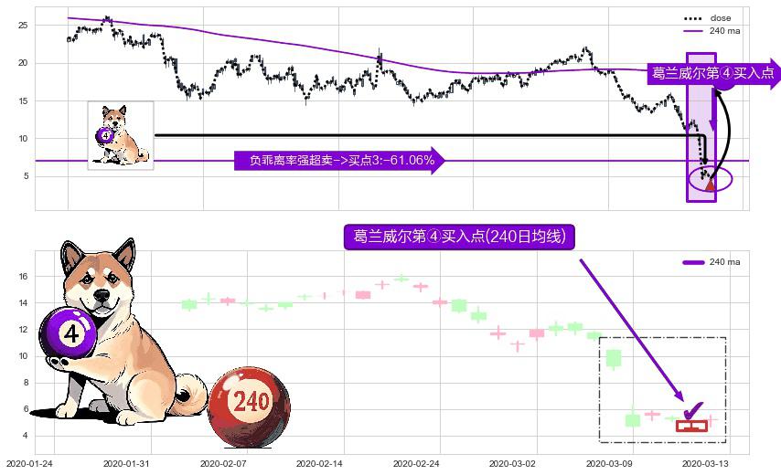 ⚀ 2020-03-12-日显现 葛兰威尔均线 240日均线 第④买入点 下降趋势均值回复的短线反弹信号,后市看涨,买进信号