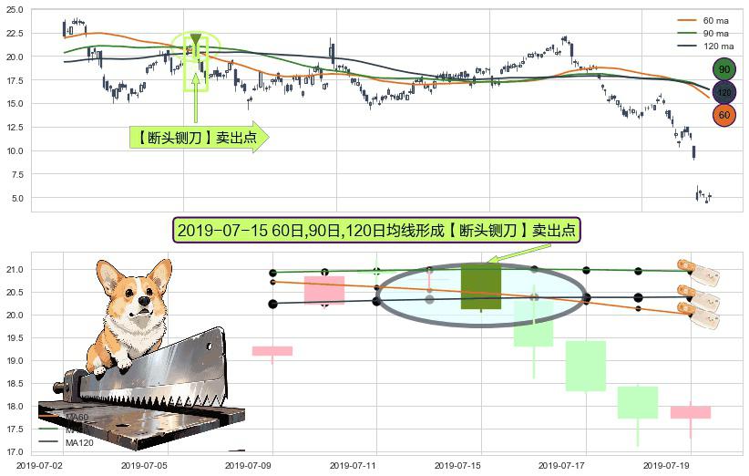 ⚀ 2019-07-15日显现 60日-90日-120日均线 【断头铡刀】卖出点 看空信号,后市看跌,卖出