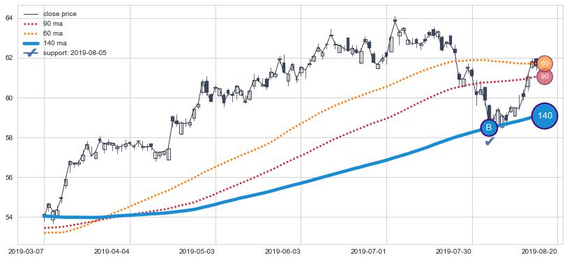 ⚃ 在破位点附近ma走势已有下垂迹象,稍后的走势中ma下降趋势明显,信号【可信度高】