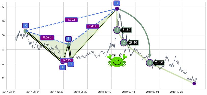 ➣ 已完成【螃蟹】形态起点X: 2017-05-12, 终点D: 2018-11-14, 共382交易日