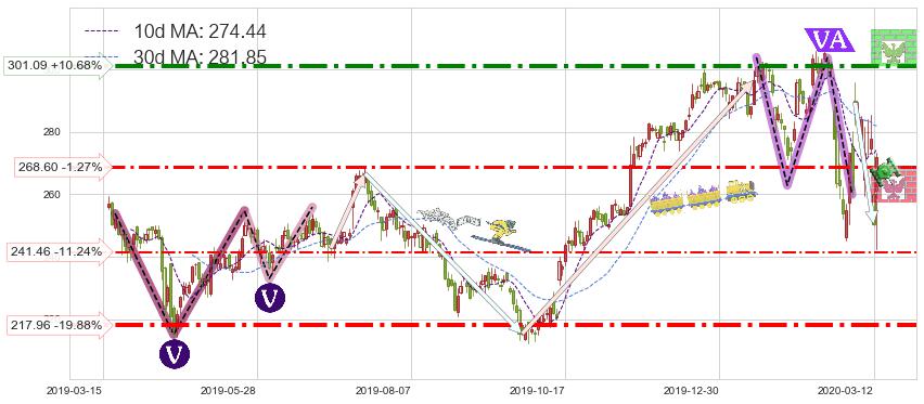 ♘ 支撑价格位268.60,可信任强度69.34%,距离最后交易2020-03-13形成的收盘价格272.04相差 -1.27%