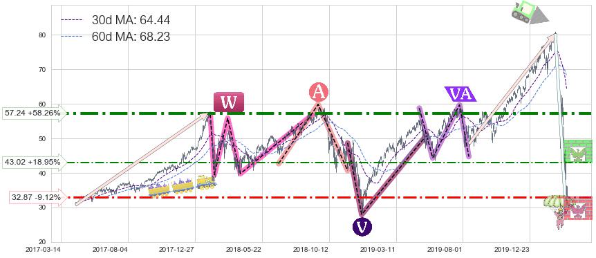 ♘ 阻力价格位57.24,可信任强度84.70%,距离最后交易2020-03-13形成的收盘价格36.17相差 +58.26%