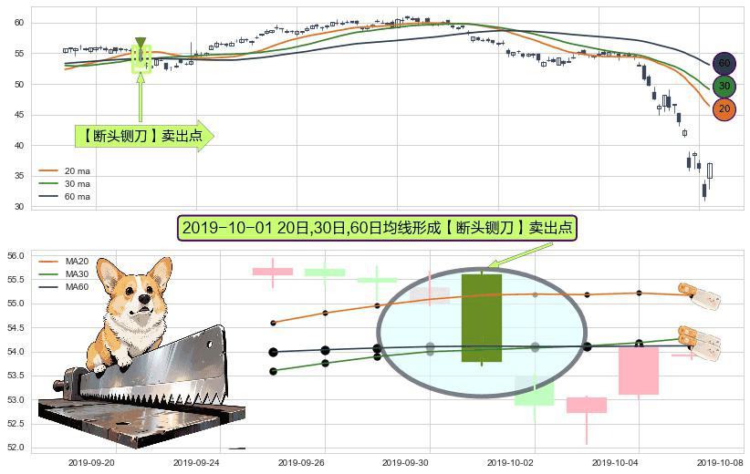 形态多维评估: ⚀ 2019-10-01日显现 20日-30日-60日均线 【断头铡刀】卖出点 看空信号,后市看跌,卖出