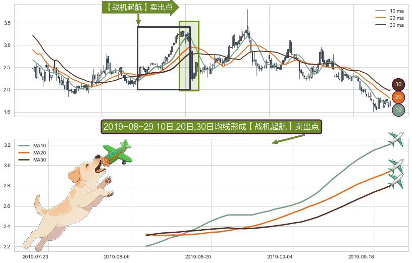 ⚀ 2019-08-08日-2019-09-20日显现 10日-20日-30日均线 【战机起航】卖出点 看空信号,后市看跌,卖出