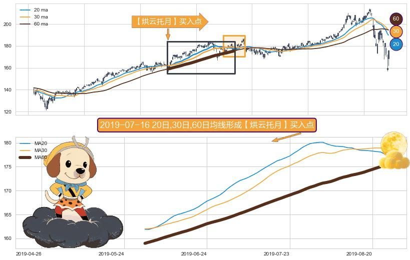 ⚀ 2019-06-03日-2019-08-26日显现 20日-30日-60日均线 【烘云托月】买入点 看多信号,后市看涨,买入