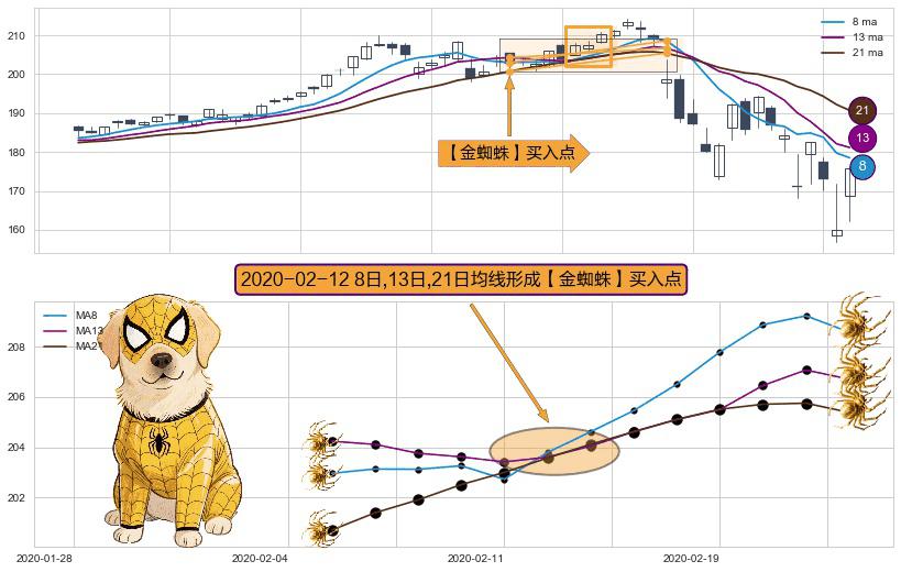 ⚀ 2020-02-12日显现 8日-13日-21日均线 【金蜘蛛】买入点 看多信号,后市看涨,买入