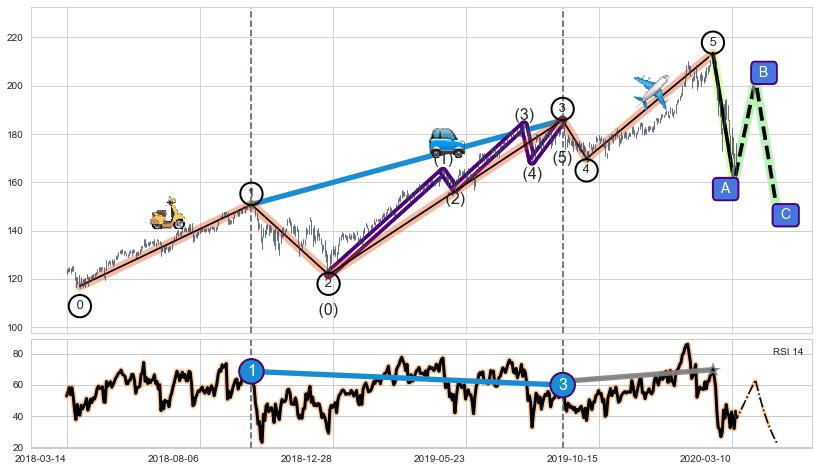 ➣ 第一, 三, 五浪上涨动能逐渐【增强变大】,趋势不断加固