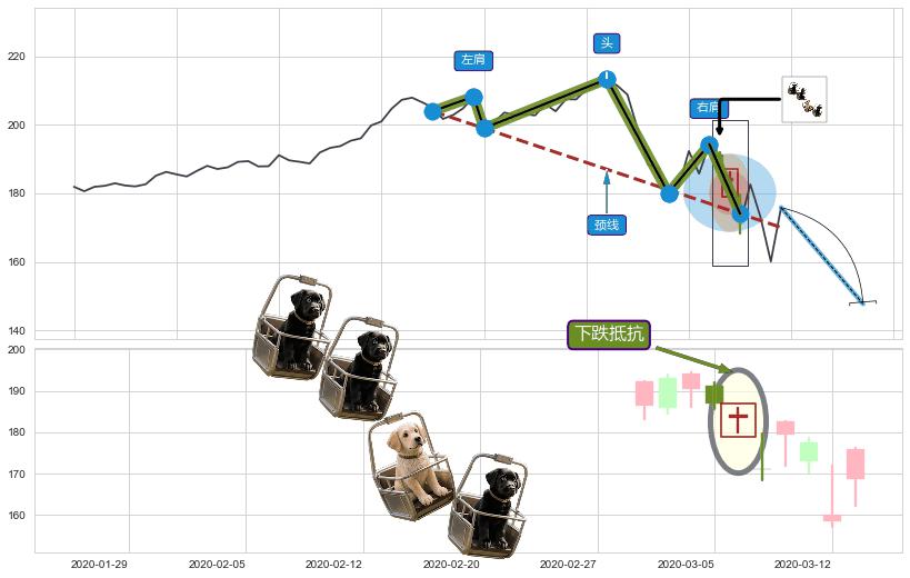 | 3 🅚:【战机起航】卖出点 ➕ 📐:头肩顶下行突破支撑位破位, 猜想持续下沉下跌,被突破的支撑位已变为阻力位 ☞ 看空信号 ⇥ 【均线】交织【图形】⇥ 综合量化分数: 48 | > |