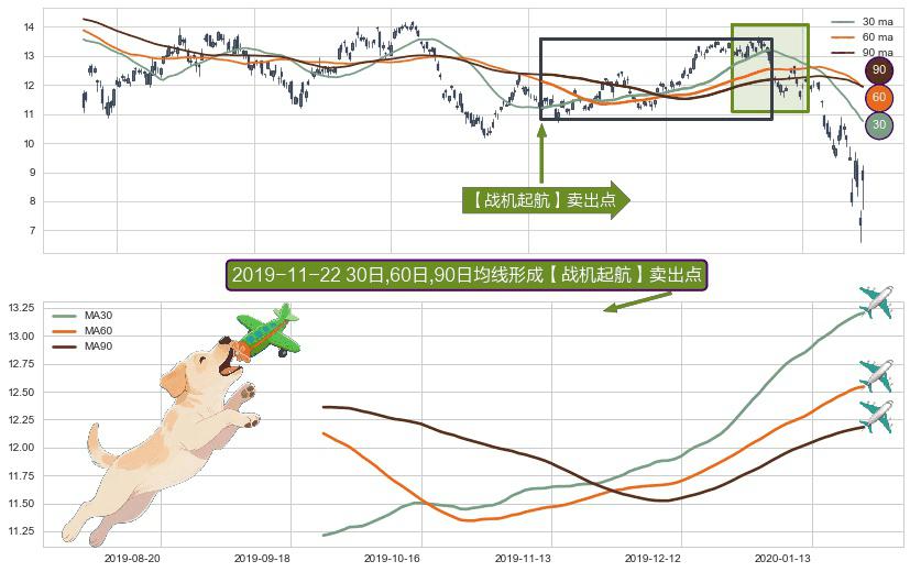形态多维评估: ⚀ 2019-09-25日-2020-01-24日显现 30日-60日-90日均线 【战机起航】卖出点 看空信号,后市看跌,卖出