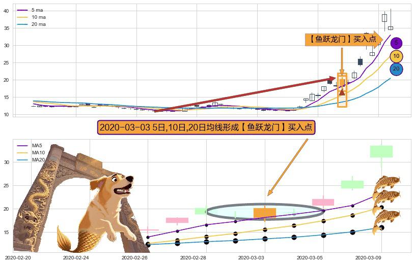 形态多维评估: ⚀ 2020-03-03日显现 5日-10日-20日均线 【鱼跃龙门】买入点 看多信号,后市看涨,买入