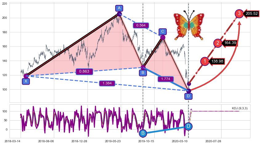 ➣ 已完成【蝴蝶】形态起点X: 2018-04-06, 终点D: 2020-03-12, 共487交易日