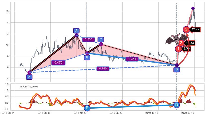 ➣ 已完成【蝙蝠】形态起点X: 2018-05-11, 终点D: 2019-12-27, 共411交易日