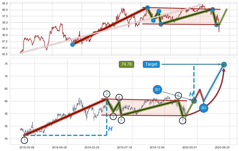 ➣ 最小中继整理涨幅→𝐇: 14.59 (𝐇旗杆的长度:旗杆起点→顶点)