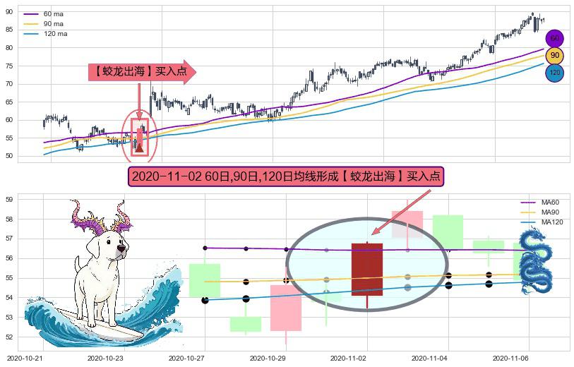 形态多维评估: ⚀ 2020-11-02日显现 60日-90日-120日均线 【蛟龙出海】买入点 看多信号,后市看涨,买入
