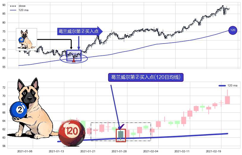 ⚁ 120日均线 第②买入点 属于 均线服从 信号,属于趋势运行的【常态】即信号期望为上涨趋势的中继