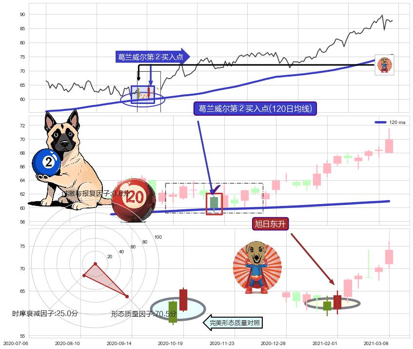 | 2 🅚:旭日东升 ➕ 🎢:葛兰威尔第③买入点买入点信号形成后,猜想后续持续拉升(趋势跟踪) ☞ 看多信号 ⇥ 【均线】交织【🅚线】⇥ 综合量化分数: 51 | > |