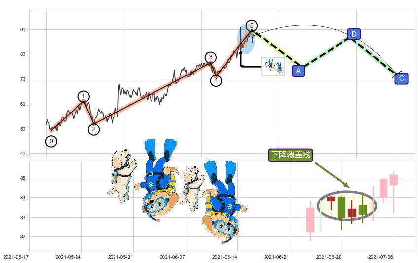 ➢ 收盘价(2021-07-19: 84.43 )→回踩→第一根k线高点(2021-07-15: 88.69 )