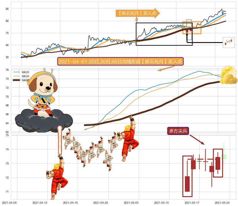 | 5 🅚:上涨孕十字星 ➕ 🎢:【烘云托月】买入点均线组合买入点信号形成后,猜想后续上升持续,上涨加速(趋势跟踪) ☞ 看多信号 ⇥ 【均线】交织【🅚线】⇥ 综合量化分数: 51 | > |