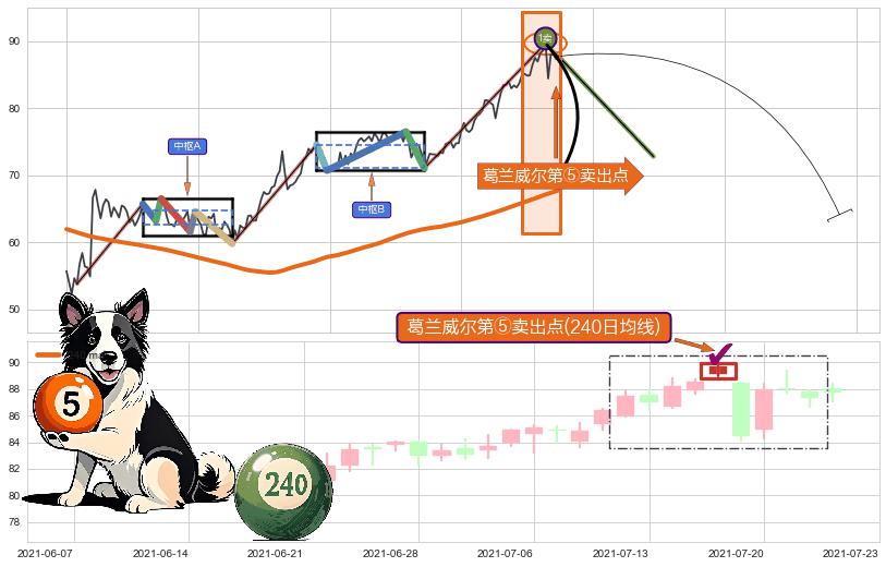 ➢ 高点影线(2021-07-21: 89.42 )→回踩→第二根k线高点(2021-07-19: 88.49 )