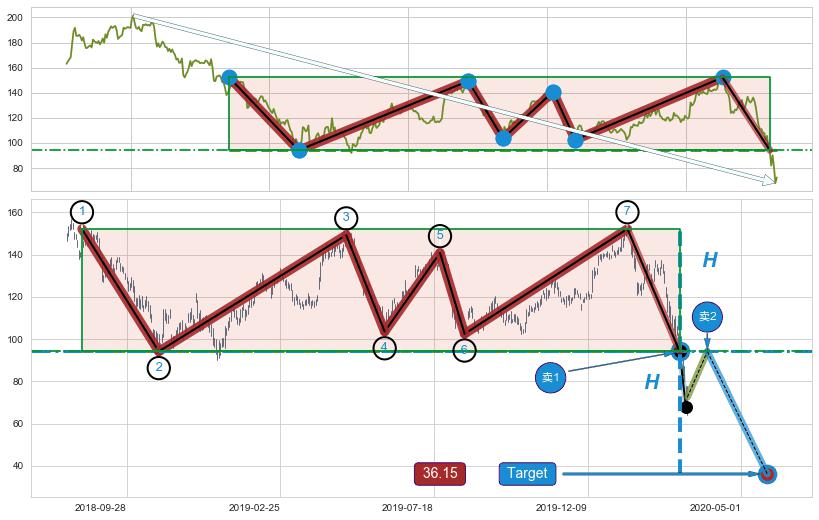 | 4 🅚:【死亡谷】卖出点 ➕ 📐:下跌矩形整理下行突破支撑位破位, 猜想持续下沉下跌,被突破的支撑位已变为阻力位 ☞ 看空信号 ⇥ 【均线】交织【图形】⇥ 综合量化分数: 37 | > |