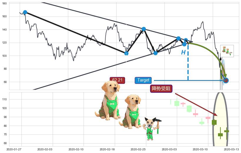 ➣ 最小中继整理跌幅→𝐇: 107.33 (𝐇旗杆的长度:旗杆起点→顶点)