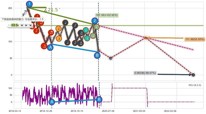 ♘ 在最后的下跌阶段2018-05-10至2020-03-13,存在 持续未破位的阻力位 ,阻力价格147.16,可信任强度57.86%,其距离最后价格72.52相差 +102.92%