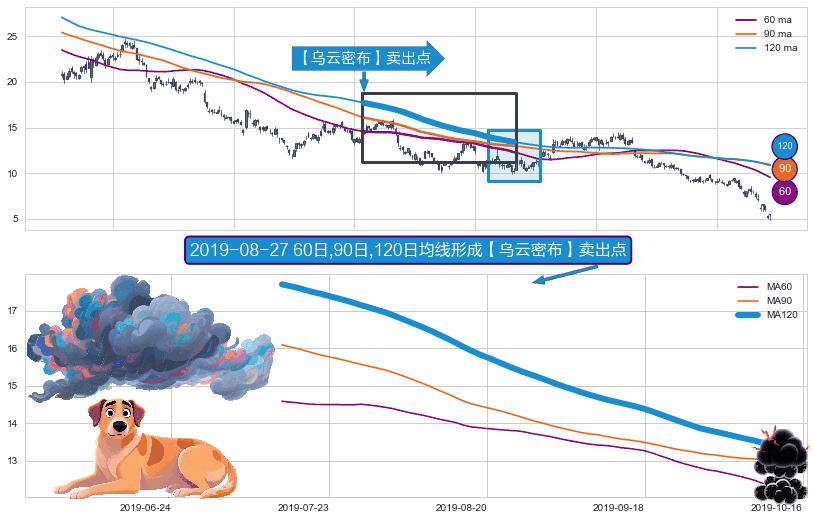 形态多维评估: ⚀ 2019-07-15日-2019-10-10日显现 60日-90日-120日均线 【乌云密布】卖出点 看空信号,后市看跌,卖出