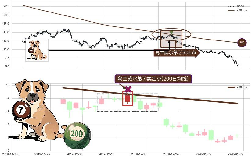 形态多维评估: ⚀ 2019-12-12-日显现 葛兰威尔均线 200日均线 第⑦卖出点 下降趋势的中继信号,后市看跌,卖出信号