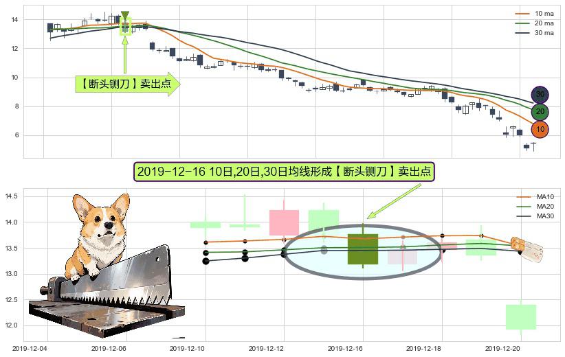 形态多维评估: ⚀ 2019-12-16日显现 10日-20日-30日均线 【断头铡刀】卖出点 看空信号,后市看跌,卖出