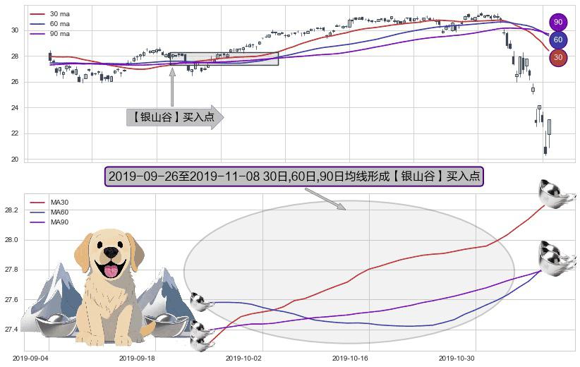 ⚀ 2019-09-27-日至2019-11-08-日显现 30日-60日-90日均线 【银山谷】买入点 看多信号,后市看涨,买入