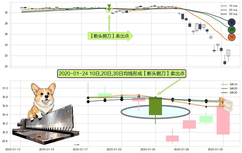 ⚀ 2020-01-24日显现 10日-20日-30日均线 【断头铡刀】卖出点 看空信号,后市看跌,卖出