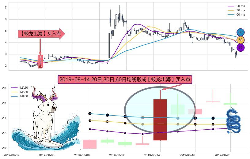 形态多维评估: ⚀ 2019-08-14日显现 20日-30日-60日均线 【蛟龙出海】买入点 看多信号,后市看涨,买入
