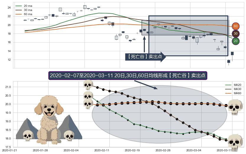 形态多维评估: ⚀ 2020-02-10-日至2020-03-11-日显现 20日-30日-60日均线 【死亡谷】卖出点 看空信号,后市看跌,卖出
