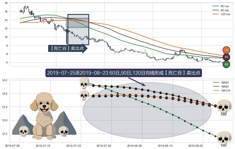 形态多维评估: ⚀ 2019-07-26-日至2019-08-23-日显现 60日-90日-120日均线 【死亡谷】卖出点 看空信号,后市看跌,卖出