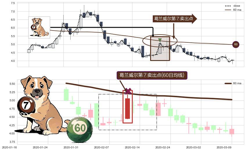 形态多维评估: ⚀ 2020-02-12-日显现 葛兰威尔均线 60日均线 第⑦卖出点 下降趋势的中继信号,后市看跌,卖出信号
