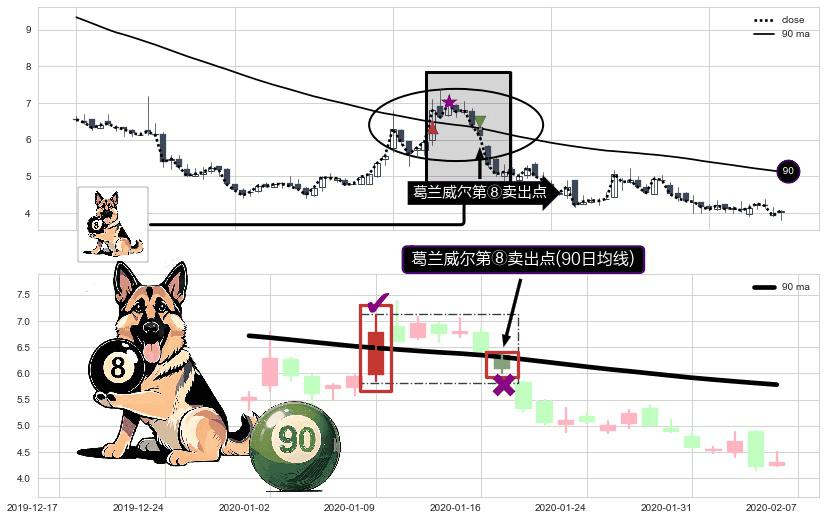 形态多维评估: ⚀ 2020-01-17-日显现 葛兰威尔均线 90日均线 第⑧卖出点 下降趋势的中继信号,后市看跌,卖出信号