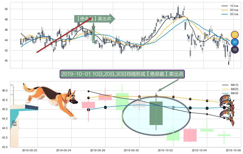 ⚀ 2019-10-01日显现 10日-20日-30日均线 【绝命跳】卖出点 看空信号,后市看跌,卖出