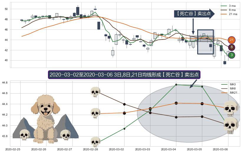 ⚀ 2020-03-03-日至2020-03-06-日显现 3日-8日-21日均线 【死亡谷】卖出点 看空信号,后市看跌,卖出