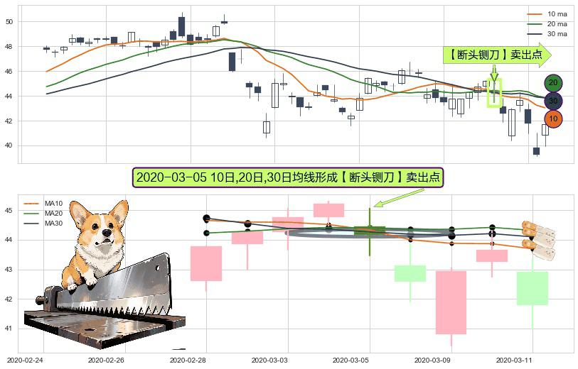 ⚀ 2020-03-05日显现 10日-20日-30日均线 【断头铡刀】卖出点 看空信号,后市看跌,卖出