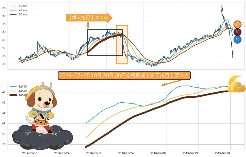形态多维评估: ⚀ 2019-06-03日-2019-08-07日显现 10日-20日-30日均线 【烘云托月】买入点 看多信号,后市看涨,买入