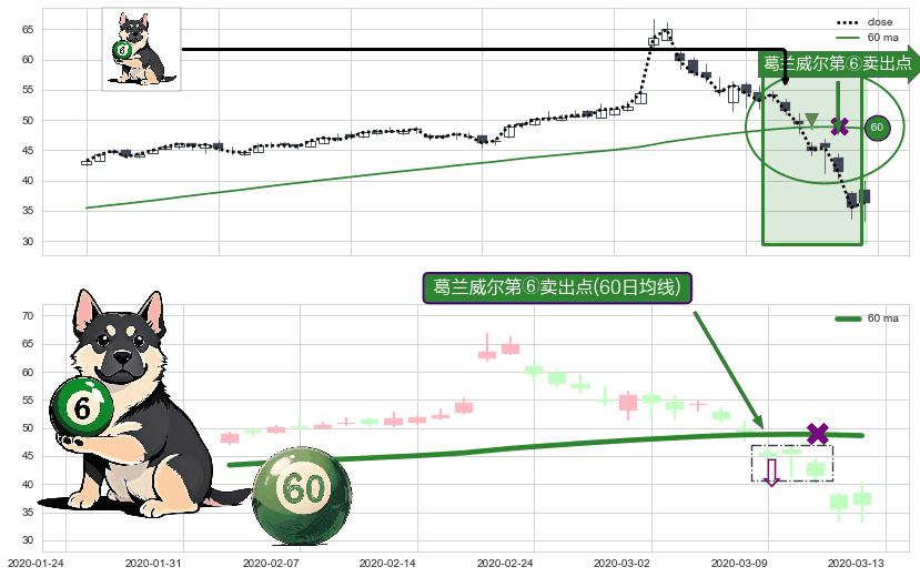 形态多维评估: ⚀ 2020-03-09-日显现 葛兰威尔均线 60日均线 第⑥卖出点 走势反转见顶信号,后市看跌,卖出信号