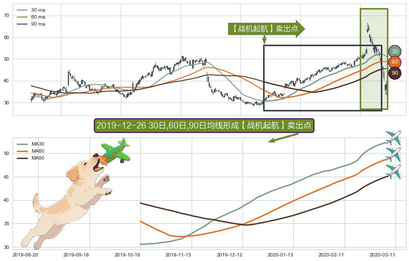 形态多维评估: ⚀ 2019-10-16日-2020-03-06日显现 30日-60日-90日均线 【战机起航】卖出点 看空信号,后市看跌,卖出