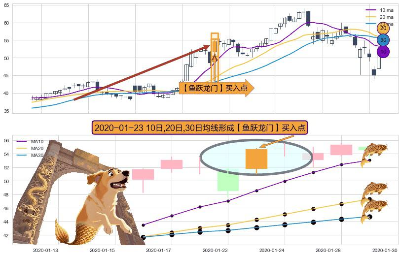 ⚀ 2020-01-23日显现 10日-20日-30日均线 【鱼跃龙门】买入点 看多信号,后市看涨,买入