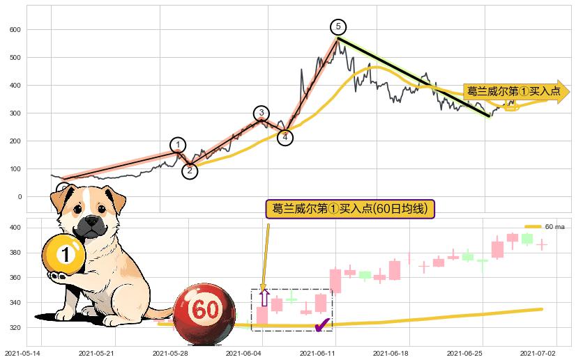 | 2 🅚:葛兰威尔第②买入点 ➕ 🌊:波浪理论上涨5浪延续:猜想C点强支撑小回调终止,猜想保持上涨5浪方向拉升(均值回复后大周期继续趋势跟踪) ☞ 看多信号 ⇥ 【均线】交织【图形】⇥ 综合量化分数: 57 | > |